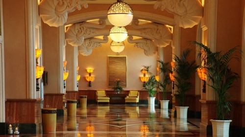 帆船酒店,大众*为熟知的*唯一的七星级酒店。话说老是在外围拿着相机对着猛拍有啥意思,享受生活,就得走进去看看。一进入帆船酒店,到处都是镀金的内饰,据说全是24K纯金呐,那亮眼的金色,晃的眼疼有木有!在帆船酒店,*小的房间有170平米,*的皇家套房居然有780平米,每个房间都有一位专属的管家为你服务,那奢华的内饰,颇具阿拉伯风情的装修,就连浴室水龙头都是金灿灿的一片,简直是奢华爆表啊!查看目的地攻略
