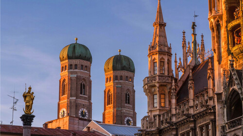 圣母教堂是如何从众多教堂中被轻易分辨的呢?得益于它标志性的两个绿色的“洋葱顶”。圣母教堂整体由红砖建造,这一部分始建于15世纪,然而一直到16世纪,人们才将教堂的顶部建造完成,由此造就了圣母教堂的晚期哥特式风格。教堂整体上没有什么华丽的装饰,显得十分庄重,登上顶部可以俯瞰慕尼黑的全景以及远处的阿尔卑斯山。查看目的地攻略