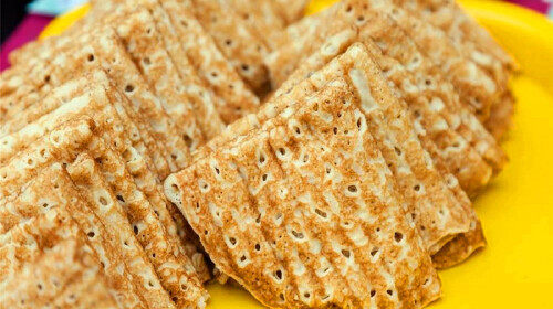 布林饼就是传说中的俄式薄饼,是俄罗斯人过节时餐桌上必不可少的食物。当你看到这个小薄饼时你也许会联想到咱们中国的山东大煎饼,没错!小薄饼其实和山东大煎饼的制作方法还真有些像,都是和成糊后在平锅上烙熟的。只是这小薄饼是由面粉、黄油、牛奶等原料制作而成,口感绵软,味道喷香,让你一块接一块根本停不下来!话说在俄罗斯餐馆中点餐时要注意,这个布林发音有骂脏话的意思,要轻声细气的慢慢说,别凶巴巴的,不然造成国际查看目的地攻略