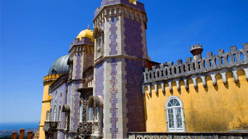 纪念碑谷里的世界是多彩的,每一个关卡呈现出不同的基调,各种风格穿插在一起,却异常的和谐。佩纳城堡正是这样一座混合了新哥特、新文艺复兴、摩尔式等多重风格的建筑,耀眼、奇特、矫饰,酷似一座乐园式的城堡,和游戏的调调十分契合。每每看到游戏世界里粉红色、亮黄色交错在一起,一个不留神儿你就会将这虚幻的场景与颜色跳脱的佩纳城堡相混淆。查看目的地攻略