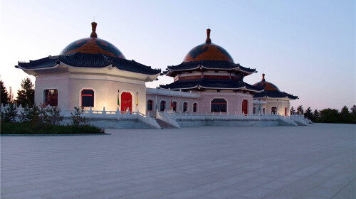 草原风光无限好,牧草腾碧浪,羊群卷雪花。据说一代天骄成吉思汗两次西征,当他率部路过鄂尔多斯草原中部的伊金霍洛旗甘德利草原时,被这里秀丽的景色所吸引,下令此处为自己的葬身之地。只见陵园内三座蒙古包式的大殿肃然伫立,明黄的墙壁、朱红的门窗、辉煌夺目的金黄琉璃宝顶,使这座帝陵显得格外庄严。不过,蒙古族盛行“密葬”,所以真正的成吉思汗陵究竟在何处始终是个谜,但这也吸引了更多爱好者一探究竟。查看目的地攻略