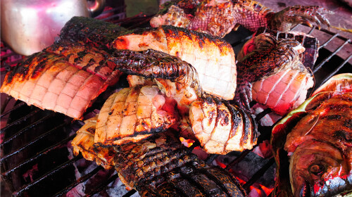 鳄鱼肉?有没有搞错,鳄鱼肉也能吃?没错!在澳大利亚吃鳄鱼是合法的。如果你是一位想要尝鲜的地道吃货,那不妨尝尝这个世界上*凶残的动物鳄鱼肉到底是个神马味儿。在澳大利亚,*普遍的吃法就是类似于像腊肉一样腌制风干后烤着吃。如果你想吃更加重口味的,在澳大利亚的餐馆中有烤的、炸的、煎的,据说吃起来很像鸡肉一般,味道十分的鲜美。话说想要尝鲜的盆友们抓住机会,这霸气的鳄鱼肉可不是到哪儿都能吃到的。查看目的地攻略
