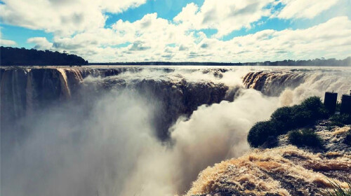 位于巴西与阿根廷交界处,伊瓜苏瀑布足足称得上世界*宽的瀑布。大自然的鬼斧神工造就了伊瓜苏瀑布唯美的形态,于是,每年都有数百万的游客前来探访伊瓜苏瀑布俊美的容颜。伊瓜苏瀑布被凸显出来的岩石切割成大大小小270多个瀑布,而以其3000米至4000米的宽度和80米的平均落差,无论是瀑布的力量,还是激流的巨响,抑或是那呈现出半环形的瀑布群形态,都会给游人们带来极为震撼的体验。查看目的地攻略