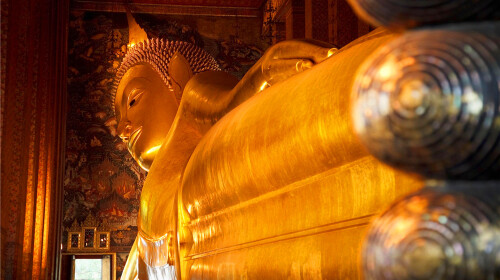 卧佛寺位于曼谷大皇宫的南面,是在十六世纪大城王朝时期开始建造的,拉玛一世在十八世纪的80年代对他进行了大规模的重建。有时人们又称卧佛寺为菩提寺,不仅是全曼谷*的庙,也是全泰国*的庙宇。据悉,全世界*的卧佛藏身于此,工艺繁复、金光闪闪、高贵安祥、卧佛巨大,可以说看到后震撼人心。不过,在卧佛前只有虔诚祈祷了,因为很难拍到卧佛的全景,即使从脚底拍摄全身也无法尽收。查看目的地攻略
