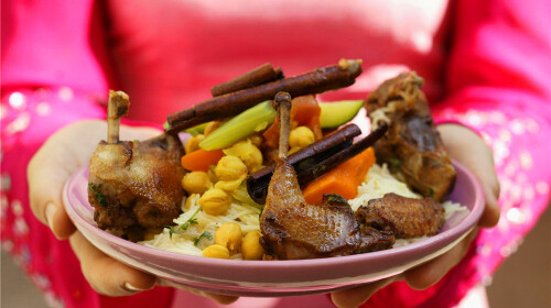 不消小编推荐,在埃及游玩的小伙伴大多都会点上一份烤鸡饭,尝尝这份人气爆表的地道美味。烤鸡饭通常分为单点和套餐,单点的话就是烤鸡配米饭,套餐则多一碗汤和沙拉。价格在20埃镑左右,十分地实惠。于是,在埃及的各大城市和旅游胜地的餐厅里,都会供应这道菜,十分地常见。虽说烤鸡饭远没有大餐那么丰盛、精致,但吃上这份“*埃及”的美食也是不负此行了。这时候,再点上一份芒果汁或者西番莲汁,更是美呆啦。查看目的地攻略