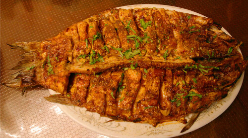 倘若到埃及红海沿岸的城市游玩,那是一定要尝尝当地的烤鱼。这里的烤鱼都是超大个儿,一条鱼能铺满整整一大盘。烤得正是火候的鱼一经端上餐桌,鱼肉的鲜美滋味“嗞嗞”地往外流,很是诱人。烤鱼的*上层更洒满了青黄甜椒、橄榄、洋葱,还有一些生鲜的蔬菜,让人一饱口福。当地还有一种做法,是将海鱼、土豆和墨玉一起烤制,味道也是美呆。查看目的地攻略