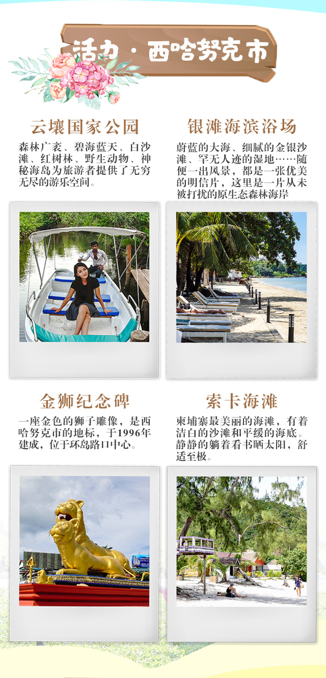 [春节]<柬埔寨-西港机票+当地5晚6日半自助游>成都直飞,贵族酒店或其他备选酒店,2天自由活动灵活搭配