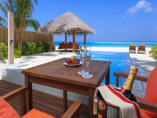 [蜜月度假]<马尔代夫美露丽芙Vilu Reef4晚自助游>北京出发,水飞上岛,中文服务,洁白沙滩