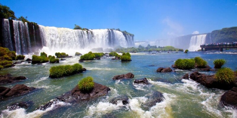 世界上最宽,风景最美的伊瓜苏大瀑布(Cataratas del guazu)。Cataratas ,西班牙语即瀑布,念起来口水花四溅。它也是世界三个最大瀑布之一。 伊瓜苏位于阿根廷和巴西两国交界处。要看清楚整个齐全的伊瓜苏,当然就得在阿根廷与巴西两国边境之间穿梭。难得是这两个国家都深谙旅游外汇之意义,瀑布两端设在效率极高的海关,那双盖印的手盖得比什么都快,肥水灌溉两家田。