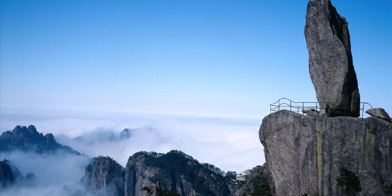 黄山第二高峰光明顶,海拔1860米。这里高旷开阔,日光照射久长,故名。这里是黄山看日出、观云海的最佳地点之一。