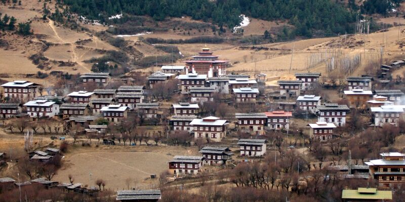 杜克耶堡(Drukgyel Dzong) 于1649年建造,为纪念不丹战胜西藏入侵者而建。由于火灾被毁,现在是一座韵味十足的宗堡遗址。以这座土黄色宗堡为背景拍照,照片意味深长。如果天气晴朗,这里也是欣赏不丹最美丽的高峰、7550米的珠穆拉里雪峰的绝佳位置.
