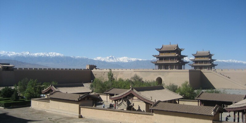 万里长城威震千古,它首衔渤海朝日,尾枕祁连雪山,重关连叠,横亘北国群山之巅。 嘉峪关位于甘肃河西走廊酒泉盆地西缘,雄峙于祁连雪峰与嘉峪黑山之间的岩岗上,地势险峻,气势以雄伟,巍峨壮观著称于世,被誉为“天下第一雄关”。