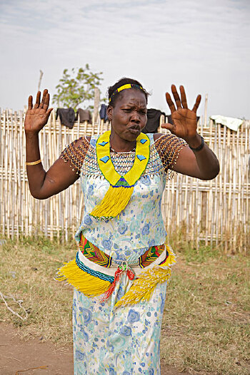 还有一种“战斗舞”,舞者腰围兽皮或布片,手持盾牌、标枪或棍棒,眼皮涂在红白色,头上戴着插有羽毛的头冠,口中不时发出嘹亮的喊声,挥舞兵器,跳出各种表现战斗场面的舞姿。丁卡人的舞蹈也很丰富多彩。有击掌聚众,准备应付不测的战斗舞;有赞美部落首领和公牛的抒情舞;有号召人们凶狠斗敌的鹰舞;有凭吊死者亡灵,表示哀伤的殡仪舞;还有模仿各种动物动作的“加尔”舞等。
