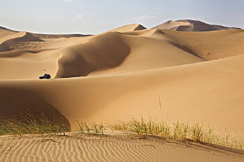 滑沙类似于滑雪、滑冰,又有所不同,坐在滑板上,从沙山顶飞驰而下,瞬间嘎然而止,一种运动的快感油然而生,而且非常安全。