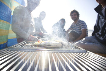 秦皇岛海滩烧烤是很多人喜爱的,如果方便的话,建议自己备上烧烤架子及食材,如五花肉、鸡翅、烤肠、蔬菜、调料等等,家人或朋友之间一起烧烤,感觉更加温馨,夜幕降临仰望繁星,说说亲切的话语,吹着海风,十分惬意。也可以在当地自己花钱租一个烤架,或者到摊位上买现成的,价格不便宜。