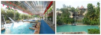 新银盏温泉度假村露天温泉区采用园林不拘,度假村内山峦起伏,树木葱茏,空气新鲜,出水相拥,为珠三角地区一个难得的“天然氧吧”。