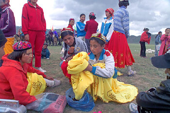 山区麦西莱甫是生活在和田地区喀喇昆仑山里的牧民和生活在山麓上从事半农半牧的农牧民所特有的一种群众性艺术活动的总称。主要是在原始的音位互不相连的三弦弹奏乐器牧民热瓦甫和小手鼓的伴奏下,参加者以具有浓郁地方特色的热情奔放的舞蹈和集各种笑话为一体的娱乐活动。