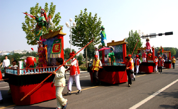 时间:正月十五 遂昌台阁始于明朝万历年间,主要流行于石练镇,是民间闹元宵的一个传统民俗活动,世代相传。在一个个轱辘板车承载的会转动的一米见方的四方桌形的小舞台上,2-4个5-9岁的孩童在上面造型精巧。这些造型以传统戏剧故事为题材,亮点在于机关重重,看上去悬险、奇妙而美观。