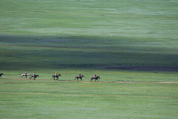 蒙古民族素有“马上民族”的美称。每逢喜庆节日,蒙古族牧民便举行赛马比赛,形式多样,引得游人纷纷尖叫呐喊。