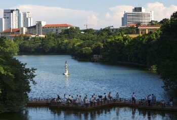 合肥的护城河,是一条与合肥的历史文明相伴而生的城市河流,这一片如翡翠项链般的绿色,圈住了合肥老城区美丽的风景。来到合肥,自然要去环城公园领略一下这城市绿洲的魅力。某一天起个早,趁整个合肥都陷在沉睡之中,慢慢地从护城河畔晃悠而过,感受这片难得的幽静。不需太长的路程,你或许会看到老人在悠闲地散步或锻炼身体,岁月就如河水一般缓慢流淌……