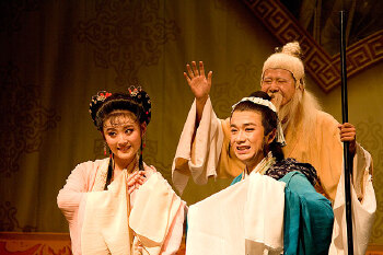 黄梅戏唱腔委婉清新,分花腔和平词两大类。花腔以演小戏为主,富有浓厚的生活气息和民歌风味,多用""衬词""如""呼舍""、""喂却""之类。有""夫妻观灯""、""蓝桥会""、""打猪草""等;平词是正本戏中较主要的唱腔,常用于大段叙述,抒情,听起来委婉悠扬,有""梁祝""、""天仙配""等。