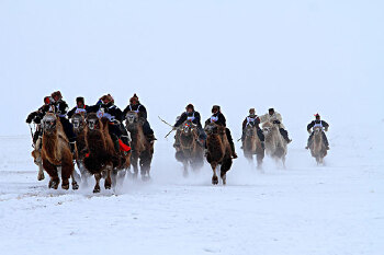 每年的达尔罕银驼文化节,伴随悠扬草原歌曲,近千名牧民身着节日盛装,牵着自己心爱的骆驼来赴会,为人们展示出冬天骆驼的独特魅力。每年都有约400多双峰骆驼在为期一天的文化节上做为主角举办多场活动,有赛骆驼、驯骆驼、骆驼“选美”、驼拉雪橇、驼球比赛等。