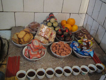 传说:民间相传玉皇大帝派灶神到人间监督每家每户的行为善恶,每年农历正月初四到任,年前12月24任满上天禀报。祭灶就是为灶神饯行。福州祭灶分两天举行:23夜“祭荤灶”,供品用鱼肉、美酒,希望灶神在玉帝面前能隐恶扬善;24夜“祭素灶”,只供水果、蔬菜和灶糖、灶饼。为的是怕灶神喝醉了酒,不分好坏,乱说一通。祭灶特别注重用糖,祭毕还抓一把糖在灶门口涂一遍,意思是把灶神嘴巴粘住,使其少说,不乱说。俗谓:“上天讲好话,下界保平安”。