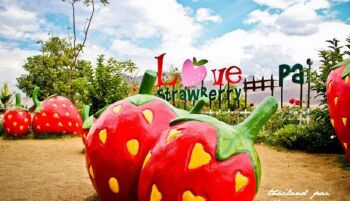 推荐理由: 不仅种植着草莓,在一旁的小坡上,更有各种各样与草莓有关的道具供游客拍照、拗造型,如心形门、留言卡片等等。在坡顶有一处开阔地可以俯瞰整个草莓园和背后的山景,十几个大大的草莓模型错落其间,外加“Strawberry,Love Pai”的背景,使这里成为颇受欢迎的摄影之地。