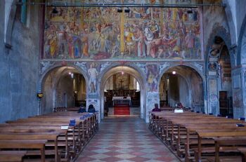 众天使圣母教堂坐落在湖畔的卢伊尼广场(Piazza Luini)上,是一座简单的罗马式教堂。教堂里藏有卢伊尼(Bernardino Luini)创作于1529年的两幅壁画,其表现力和色彩的鲜艳程度令人赞叹。