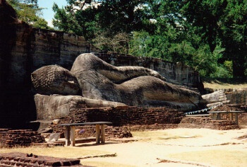 伽尔寺是由不知名的艺术家在一整块巨型花岗岩石上雕刻而成,包括前后相连的三大佛像和一座佛龛。伽尔寺的佛像象征着斯里兰卡古代艺术的巅峰之作,气势雄伟,刻画得出神入化。伽尔寺是东古城极热闹的地方,因为这里给信徒们提供了极值得顶礼膜拜、较能够表现佛陀神迹的象征。伽尔寺的卧佛长14米,刻画了佛陀涅槃的场景,描绘了进入极乐世界的安详。而且这些佛像本身所具有的强烈美感和巨大的形象使得大家不禁驻足良久,流连忘返,而且即使离开很久之后也难以忘怀。为了保护石像不被破坏,斯里兰卡政府将伽尔寺用铁皮架围住了。