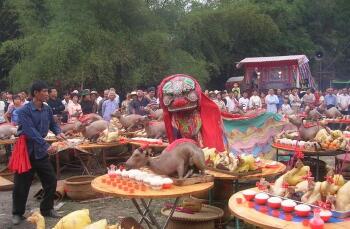 “龙滚军坡”是海南省万宁地区的一种传统的民间庆祝活动。海南不少地方都有军坡节,但是盛况空前的龙滚军坡却有截然不同的地方。为什么龙滚军坡定于每年农历六月廿一日举行?这里有一段真实故事。清咸丰(1851-1861)年间,军戏流遍全岛民间。龙滚村艺人庆筹兰组建的“琼顺班”在岛内各地演出。由于清朝腐败,反清情绪高涨,进步艺人大编大演反清的戏,屡遭清兵追捕。庆寿兰决定出洋逃难之前于1859年六月廿一日带“班” 回家,在龙滚营搭起土台,上演《颐和园》、《北洋狗》、《窦娥冤》和《怒沉百宝箱》来告别乡亲父老。是日龙滚村家家户户杀鹅迎客,大排延宴;亲朋戚友白天饮酒,夜间看戏,直到通宵。第三天,“琼顺班”离开龙滚,从西营抵达星洲。“琼顺班”流入南洋,是琼戏南播的较早的文武大班。他创立的“星洲剧社”,成为琼戏在海外点播艺术的创导者和组织者。多少年来,为纪念这位进步艺人,龙滚村的乡亲父老每年都要于六月廿一日杀鹅排席,庆祝军坡节。
