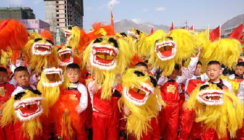 兰州街头的社火表演较有特色,可以看到太平鼓舞。