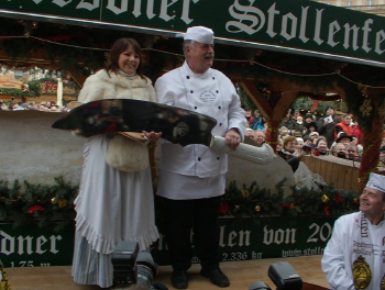 圣诞果脯蛋糕节是每年德累斯顿圣诞市场的高潮,每到此时德累斯顿圣诞果脯蛋糕保护协会的成员都要烘制一个重约3000公斤的巨型圣诞果脯蛋糕。这个又长又大的面包先要被抬着穿过旧市场,场面热烈。然后由一位面包大师手持1.6米长、重达12公斤的大刀将这个大圣诞果脯蛋糕切开,旁边助威的还有一位德累斯顿圣诞果脯蛋糕小姐, 她不仅美丽迷人,而且还掌握关于圣诞果脯蛋糕的专业知识。每年德累斯顿的圣诞果脯蛋糕小姐要从面包和糕点业者中选出。不仅如此,她还要承担圣诞果脯蛋糕节中其他许多任务,同时也是德累斯顿面包和糕点协会的形象代言人。