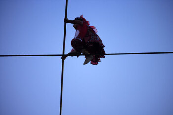 “达瓦孜”一词维吾尔语的意思是高空走大绳,是维吾尔族传统的民间杂技表演艺术。活动中,达瓦孜表演者要手持一根3米多长的横杆用以保持身体平衡,行走在20余米的高空麻绳上。在新疆民族鼓乐的伴奏下,踏着轻快的步伐,直通高杆的顶端。 现在在市区内很难欣赏到正宗的达瓦孜表演了,只有在少数民族重大节日时会有公开的演出。喜欢的游客可以询问当地一些艺术团演出情况前去观看。