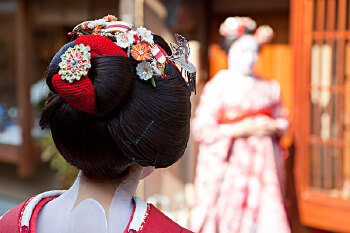 在日本旅行,试穿和服是领略日本文化最地道的体验。和服不仅融合了优雅气度与深层内敛之本质,更反应了穿着之人的心与动。每一套优美的和服,都经精心裁制,讲究穿着时的每一个细节及步骤。京都有许多可以租借和服的商店,游客可以身着传统和服到京都街头漫步,观光拍照留念。除了传统的和服,有些店还可以把游客打扮成歌舞伎的样子,服饰、配饰、发型和妆容店家都会帮忙造型。和服租赁店在夏季还会出租浴衣。