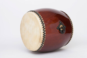 鼓身象木盆,只蒙一面皮子。春节期间,打鼓人系上腰带,带上斜插一弯棍,从后背斜到左肩前,棍头挑着木鼓,左手扶鼓边,右手拿木棍打鼓,打时又唱又跳。