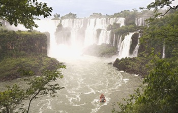 会乘坐环保电瓶车到达雨林深处,在向导的带领下进行一段雨林徒步,欣赏孤䳍瀑布(Salto do Macuco)。之后到达港口乘坐双引擎大快艇,先从远处欣赏瀑布,再从瀑布下面冲过去,感受瀑布的力量。