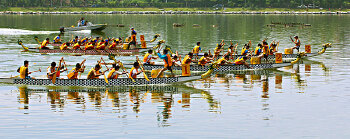 揭阳赛龙舟活动,已有300多年的历史。揭阳素称水乡,溪涧交错环绕,榕江南北二河、练江、龙江水深流长,河面宽阔,波平浪静,是划龙舟的好地方。赛龙舟活动,历代不衰。