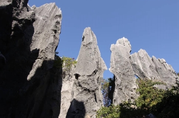 木化石林座落在大佛寺风景名胜区的象鼻山下,这里采集了新昌独特的木化石七大品种30多棵,较高一棵达14米,这些形姿各异的木化石,或粗犷雄壮,或亭亭玉立,它们和这里的奇崖怪石、山塘水泉、花卉草坪,错落有致地结合在一起,形成天然大盆景模样,使游客一饱眼福。