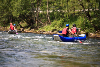 漂流河道长6公里,起点在“飞流直下三千尺”的瀑布下,全程落差120多米,沿途有碧湖印月、碧溪瀑布、溪寨晨曦、急浪英姿、先祖遗迹、流液琼浆、碧水飞舟、万绿桔红等大自然美景。