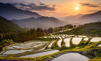 跨越高山、丘陵、谷地三个地质景观带,多达有700多层,是华东较大的梯田群。云和梯田如链似带,从山脚盘绕而上,层层叠叠,高低错落,其线条如行云流水,潇洒柔畅,规模壮观,气势恢弘,磅礴大气与细腻爽洁的点线相谐,形成妩媚潇洒的曲线世界。