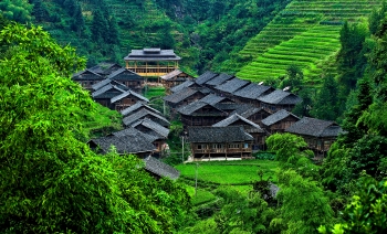 这个被群山环绕的城堡式瑶寨,于江永县兰溪瑶族乡,距江永县城37公里,山寨中的传统节日洗泥节列入省非物质文化遗产。 瑶寨至今保留明代、清代的民居300多栋,随处可见社坛土地、舞榭歌台、凉亭桥梁。其中还有大型的有盘王庙、相公庙、老虎庙、关公庙等古迹。 青石板的巷道遍布全山寨,房屋四周突起的马头墙,檐饰彩绘或砖雕,点缀着小型青石花格窗,从而形成各具特色的街景。独具特色的洗泥晚宴,让吃货在载歌载舞中品尝瑶家美食。