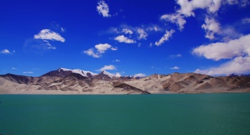 从红其拉甫口岸的路上从盖孜边防检查站出来,沿着帕米尔高原上的314国道继续驱车前行,有一处美景不可不提,那就是“沙山倒影”——白沙山和流沙河。那里海阔天空、风轻水静、河面如镜、白云似雪,白沙山由大大小小十余座山丘组成,相对高度多在100 米以上,蜿蜒有十几公里。从远处望去,在远方的青山和近处绿草的映衬下,天地苍茫,巍峨雄壮,那银色的细沙洁白柔和,就象婴儿的肌肤,令人心动。据说这里就是《西游记》沙和尚的白沙山和流沙河,千万年的天地造化,留下人们无穷的遐思和想象。