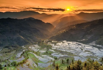 紫鹊界位于新化县水车镇。它集云南哈尼梯田的大气、广西龙胜梯田的壮美、菲律宾巴拉韦梯田的险峻和越南沙坝梯田的飘逸于一身,线条流畅,层次分明,气势雄伟壮观,站在山顶远眺,如级级阶梯,似根根纬线,层层叠叠、依山就势盘旋于群山沟壑之间。