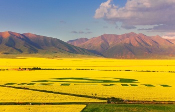 圆山观花台距离门源县城约22公里,是观赏油菜花的很重要的地点,从青石嘴镇步行可到。由于这里油菜花田比较集中,多数游客会选择在这里观赏油菜花,圆山是油菜花海中一个孤立的小山包,有台阶直通山顶观景台,站在山顶可以全方位俯瞰油菜花海与青稞组成的“大地艺术”,摄影采风爱好者可千万不要错过。