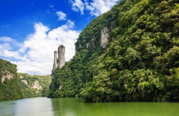 阳山小桂林位于清远市阳山县城东南约12公里的自然风景区,秉承着岭南磅礴而秀丽的湖光山色,因而有“阳朔山水甲桂林,阳山山水甲清远”的说法,著名书画家关山月曾到此写生,深感山水多情姿态,遂将水口镇一带的风景区称为“小桂林”,阳山小桂林也由此名声大噪。此处水域蜿蜒曲折,河道两旁青山起伏,因特殊地质结构而于峭壁上盘根错节钟乳石光怪陆离,加上翠绿的田园风光和岭南古色古香的民居点缀山水之中,俨然一幅不输阳朔漓江山水的迷人画卷,爱好摄影的朋友们可千万不要错过。