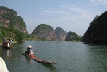 龙虎山竹筏在河水上漂流,看水里的鱼儿在遨游,两边丹霞地貌群山倒影在河水中,连接着两岸的青山,把上清宫、天师府、龙虎山、仙水岩等景色连为一体,随着水波,穿越这个独特而美丽的水上之旅,感受无比的惬意!