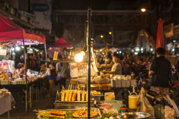 清迈的周六、周日夜市非常有名,所以,在旅游时间安排上建议要包含一个周末,不然就会巧妙地避开清迈的重要游玩项目啦。周六夜市是在古城的南门,这个夜市主要就是各种小吃,但是这里没有禁止车辆通行,所以体验没有周日夜市好。周日夜市是在塔佩门这边,规模要大很多,下午四五点就会基本出摊成形。届时不仅小吃无数,还有非常丰富的旅游纪念品卖。另外,里面只可步行,车辆是不允许进的,所以逛起来舒畅的多。