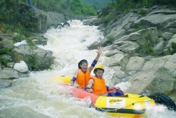 芙蓉峡中泉水聚集成河,水流之间的落差有100多米,流速非常湍急,漂流过程费率惊险、刺激。全程都是在山谷间、溪流中漂落。一般采用两人相聚一艇自由组合,共享漂流的乐趣。整个河道有各种景观,娱乐的时候也有休闲的乐趣。
