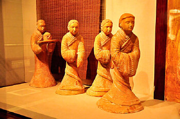 马王堆是西汉初期长沙国丞相、轪侯利仓及其家属的墓地,共三座,二号墓葬的是汉初长沙国丞相轪侯利苍,一号墓是利苍妻的墓,三号墓是利苍之子的墓,目前只有三号墓可供游人参观。三座墓出土珍贵文物约3000多件,绝大多数保存完好,有彩俑、乐器、兵器、印章、帛书、帛画、各种漆器等,漆器制作精致,纹饰华丽,光泽如新,还有大量丝织品如绢、绮、罗、纱、锦等,做让人吃惊的是那件素纱襌衣,其轻若烟雾,薄如蝉翼,衣长1.28米,且有长袖,重量仅49克,不禁让世人感叹古代织造技巧之高超。